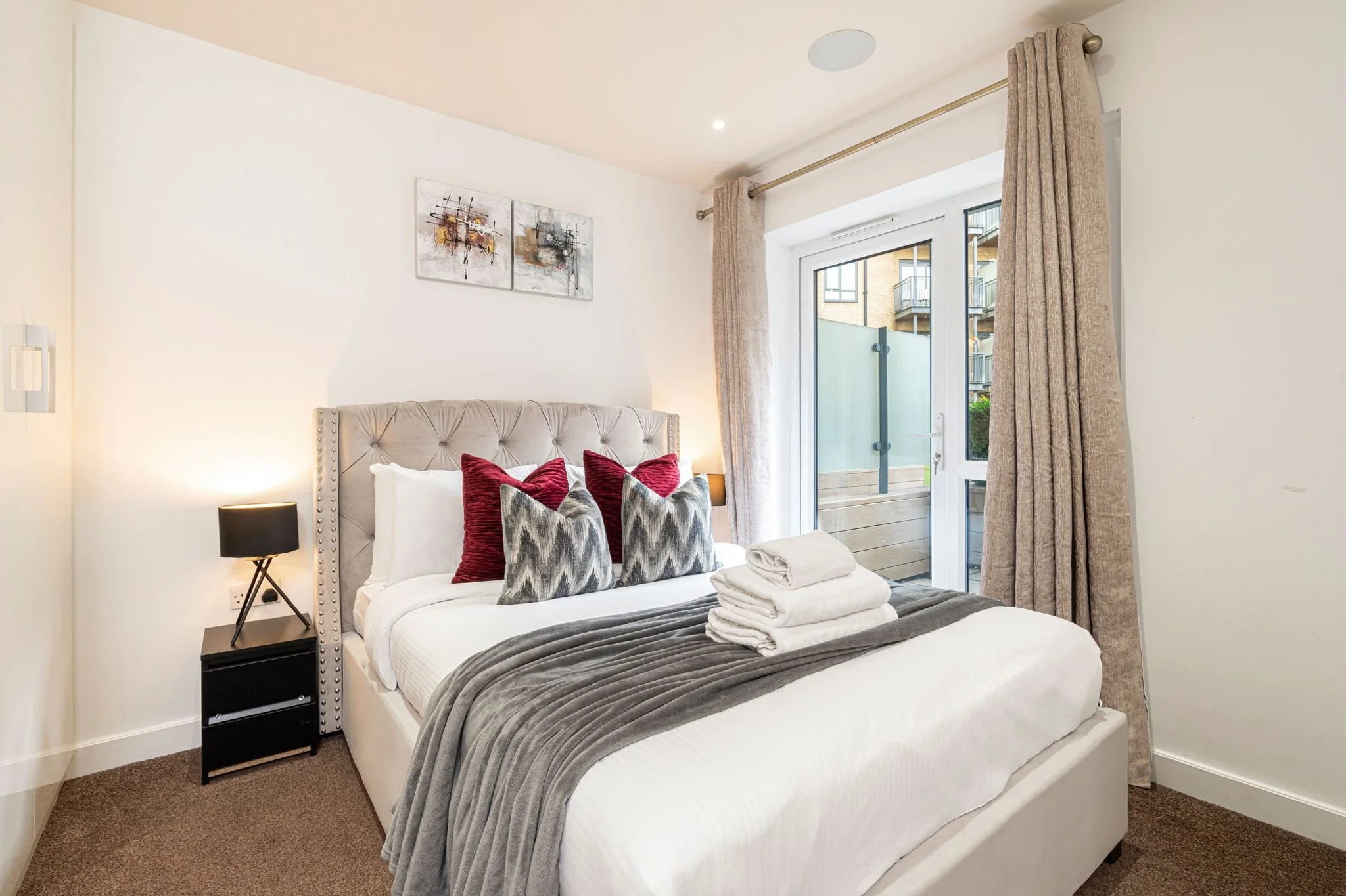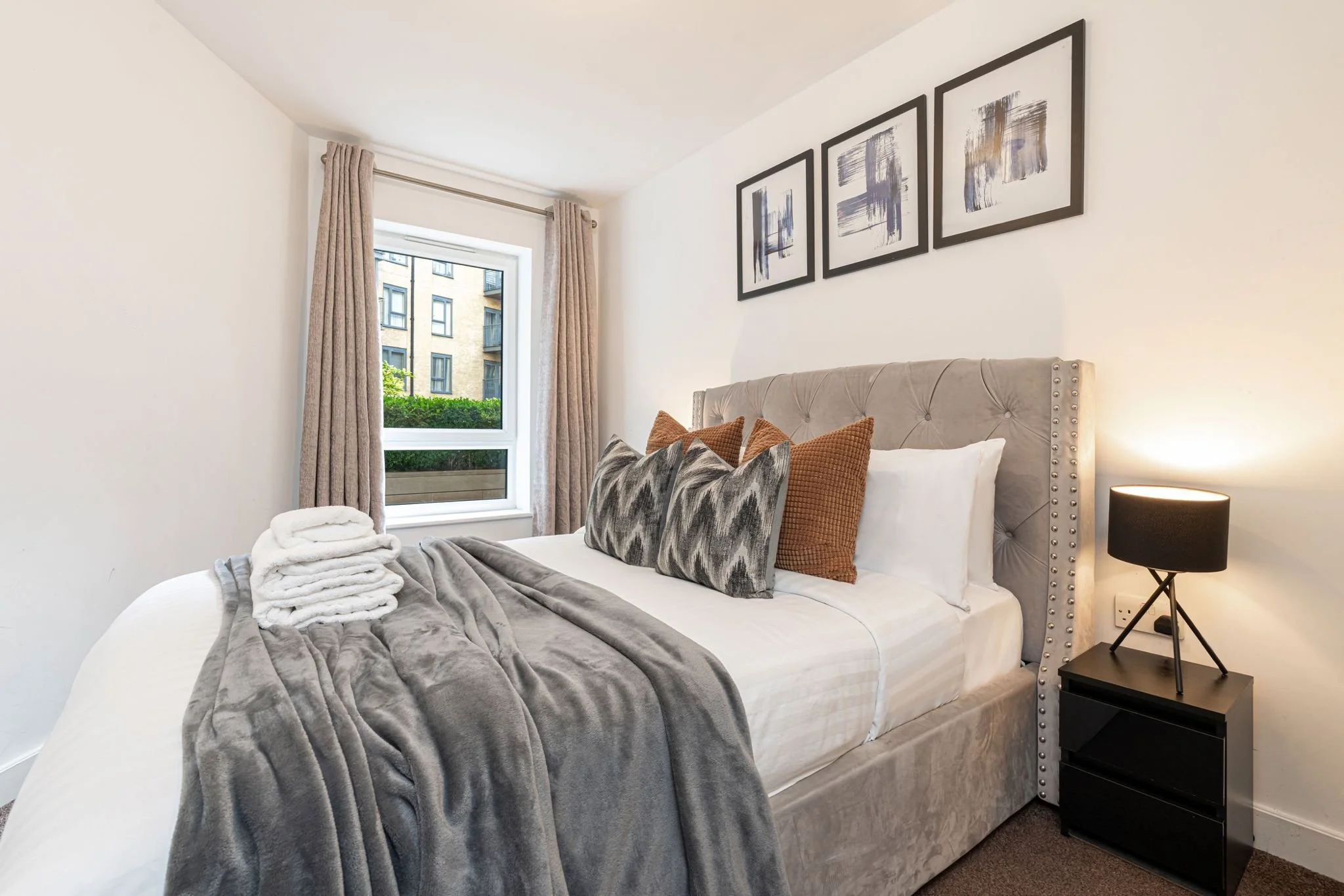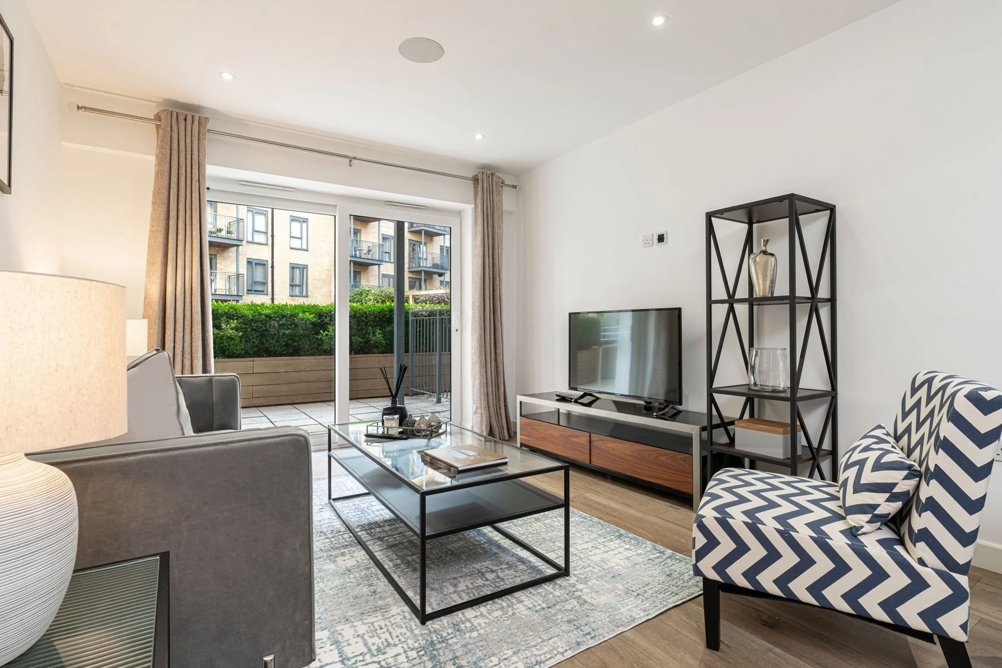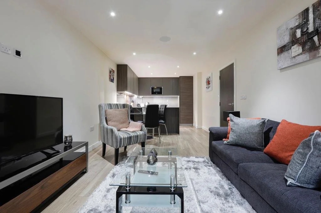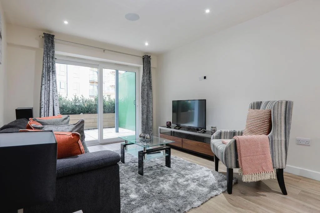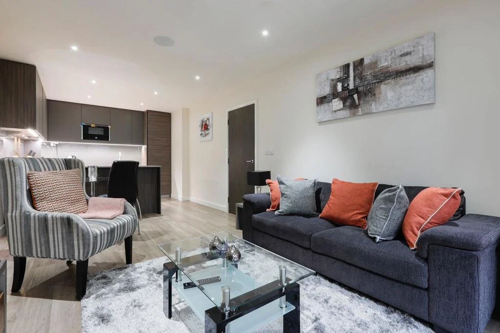 A contemporary furnished two-bedroom,, two-bathroom apartment in a modern development perfect for relaxing away from the buzz of the city. The apartment is fully equipped with everything required for a comfortable stay in a beautiful neighbourhood in London. The development has a vibrant buzz with local amenities on your doorstep. The apartment is well-equipped with a large open-plan living area, a modern kitchen, two double bedrooms and two modern bathrooms. It comes equipped with super-fast WiFi, smart TV with all the streaming services you can ever dream of. Enjoy everything London has to offer from this beautiful apartment.