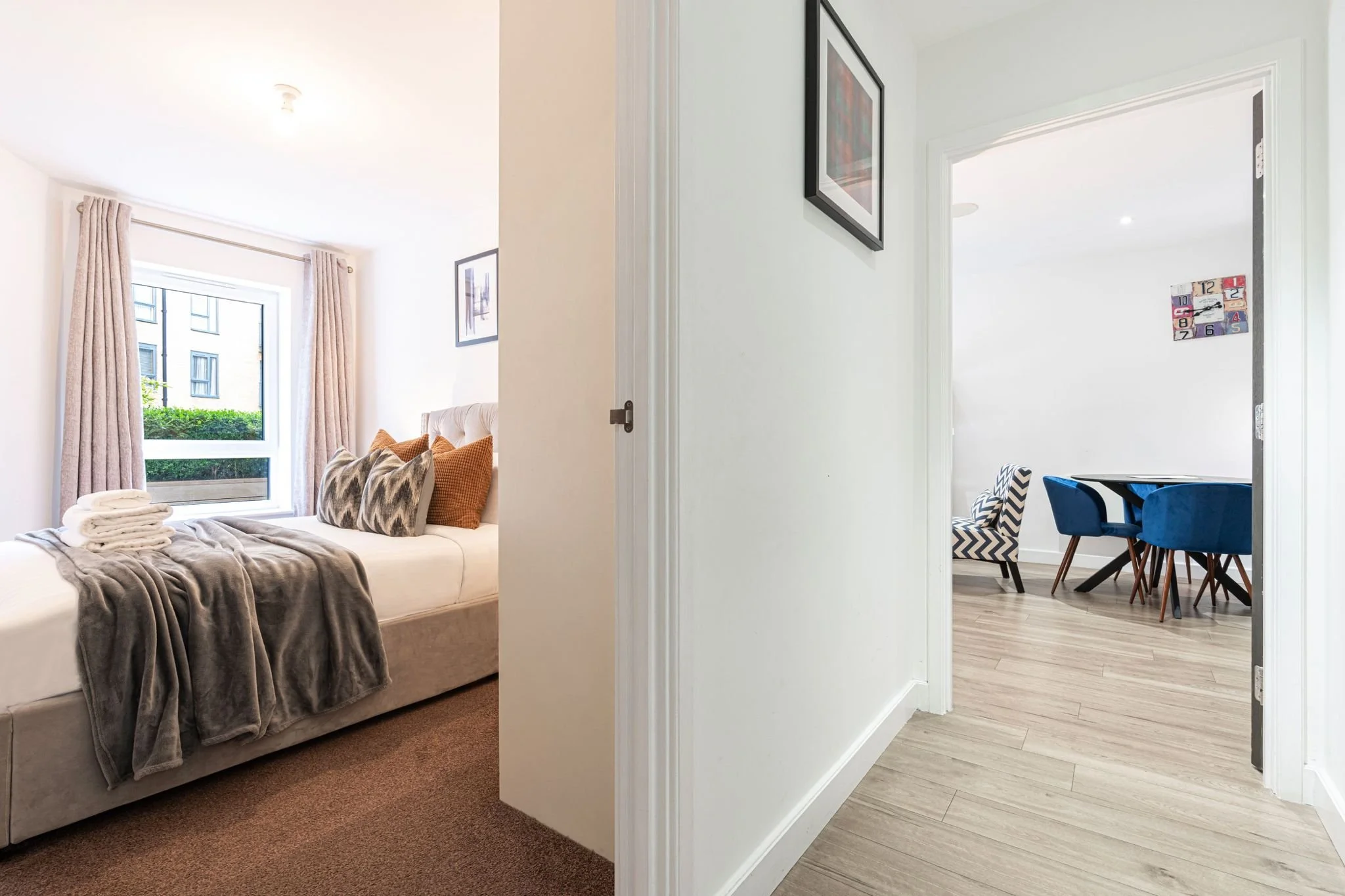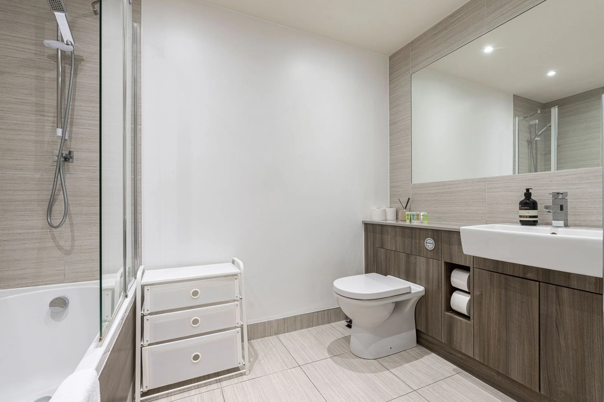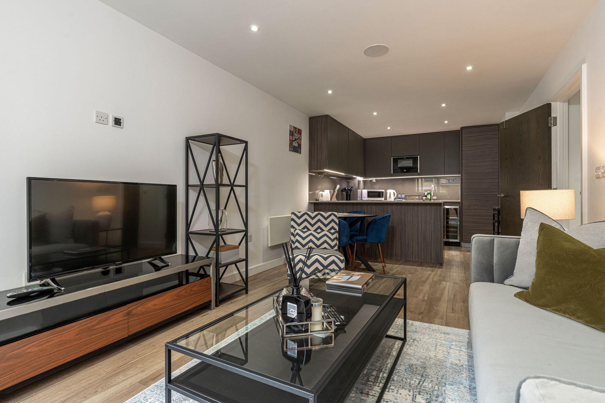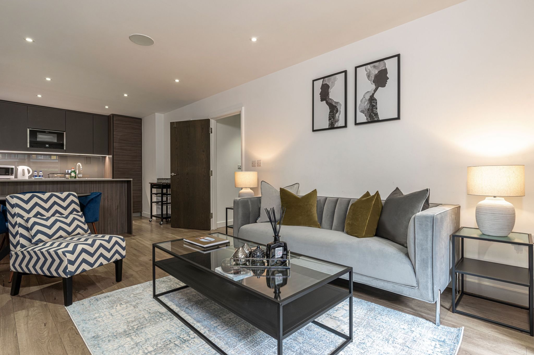 A contemporary furnished two-bedroom,, two-bathroom apartment in a modern development perfect for relaxing away from the buzz of the city. The apartment is fully equipped with everything required for a comfortable stay in a beautiful neighbourhood in London. The development has a vibrant buzz with local amenities on your doorstep. The apartment is well-equipped with a large open-plan living area, a modern kitchen, two double bedrooms and two modern bathrooms. It comes equipped with super-fast WiFi, smart TV with all the streaming services you can ever dream of. Enjoy everything London has to offer from this beautiful apartment.