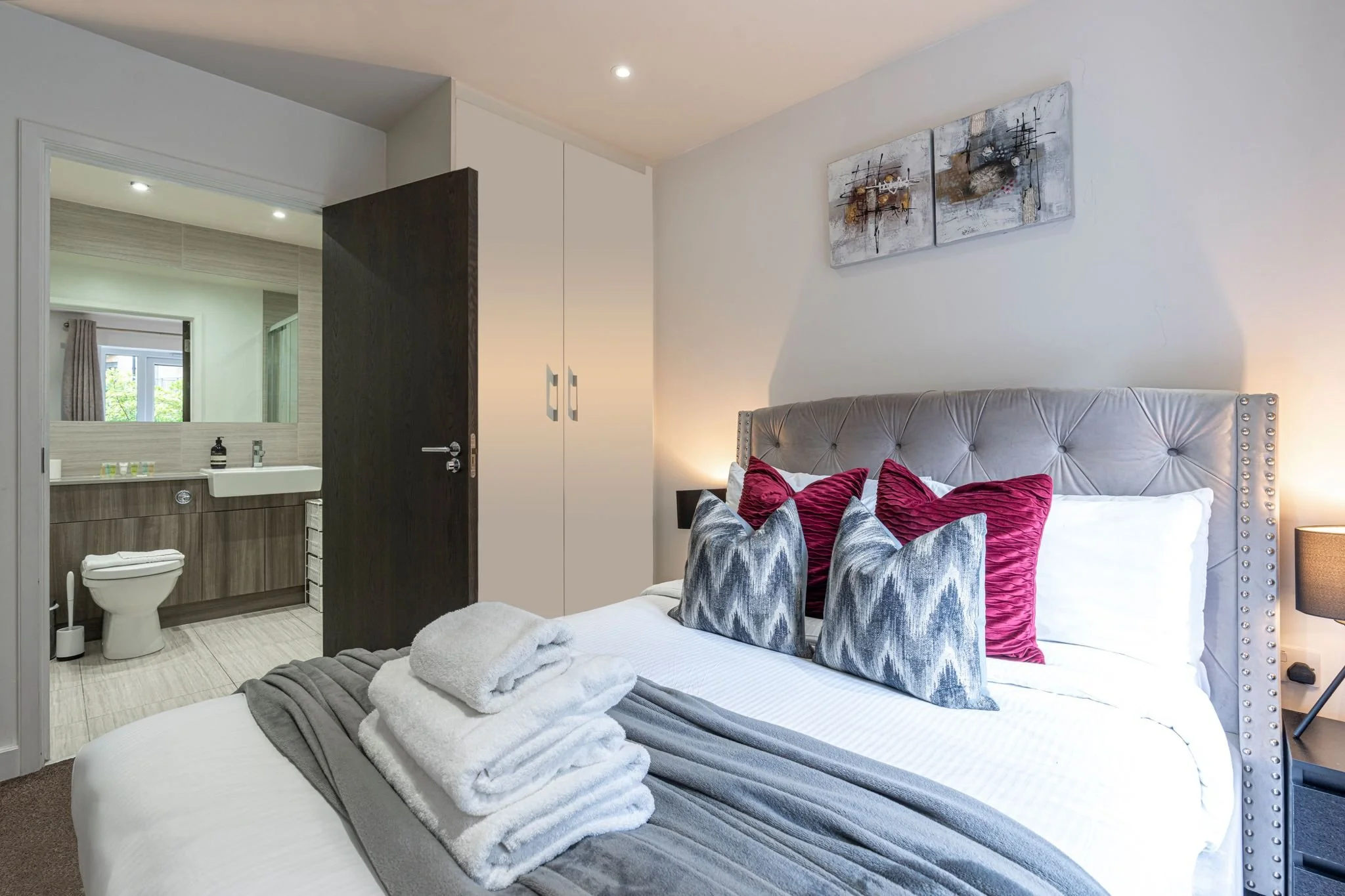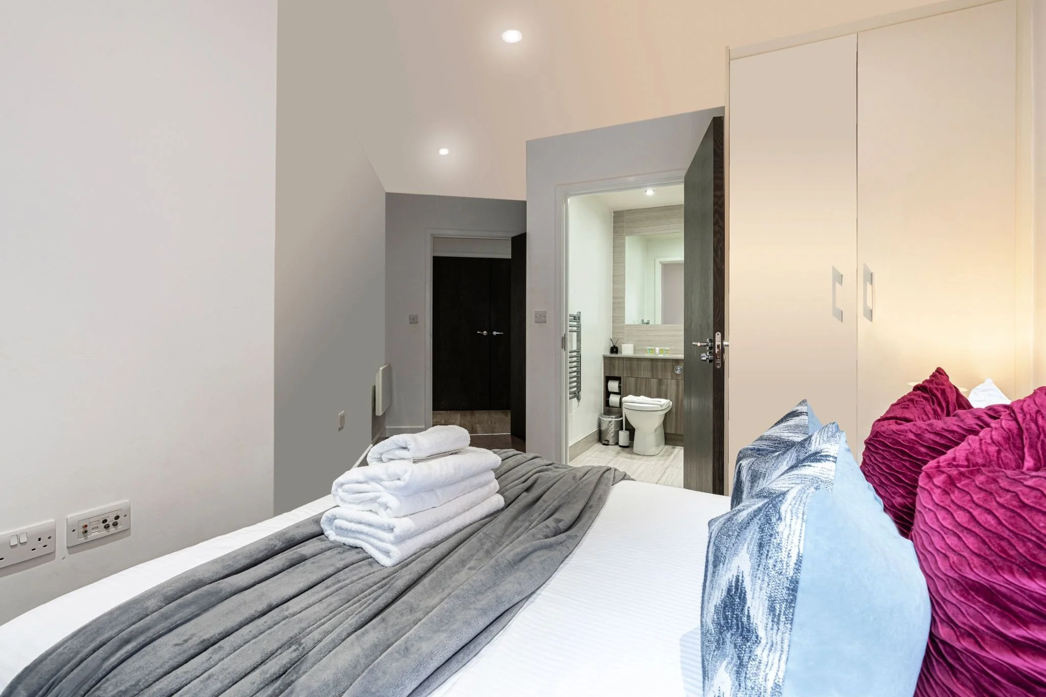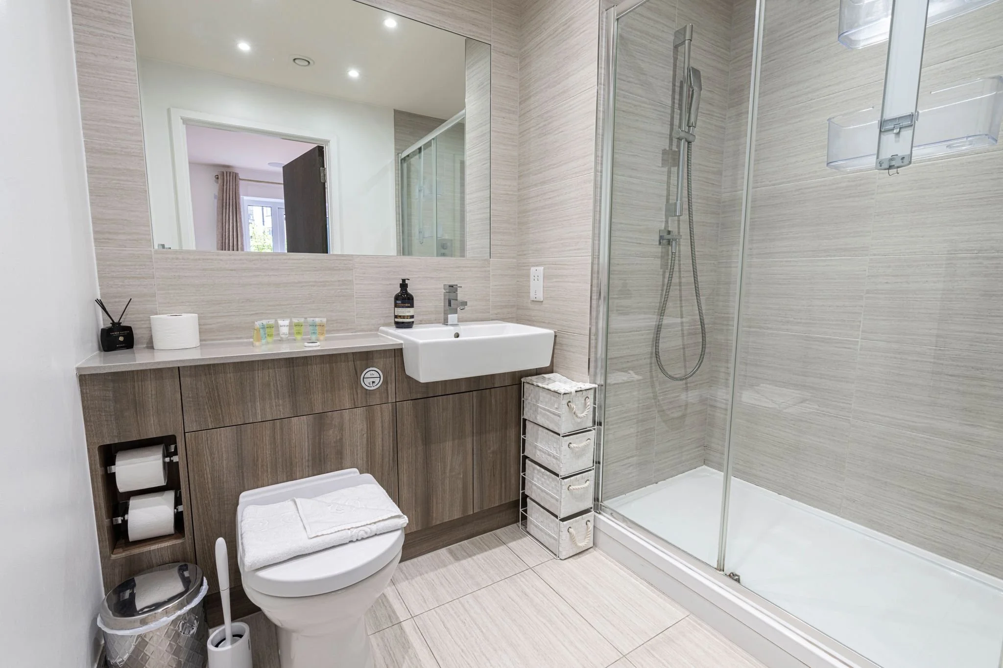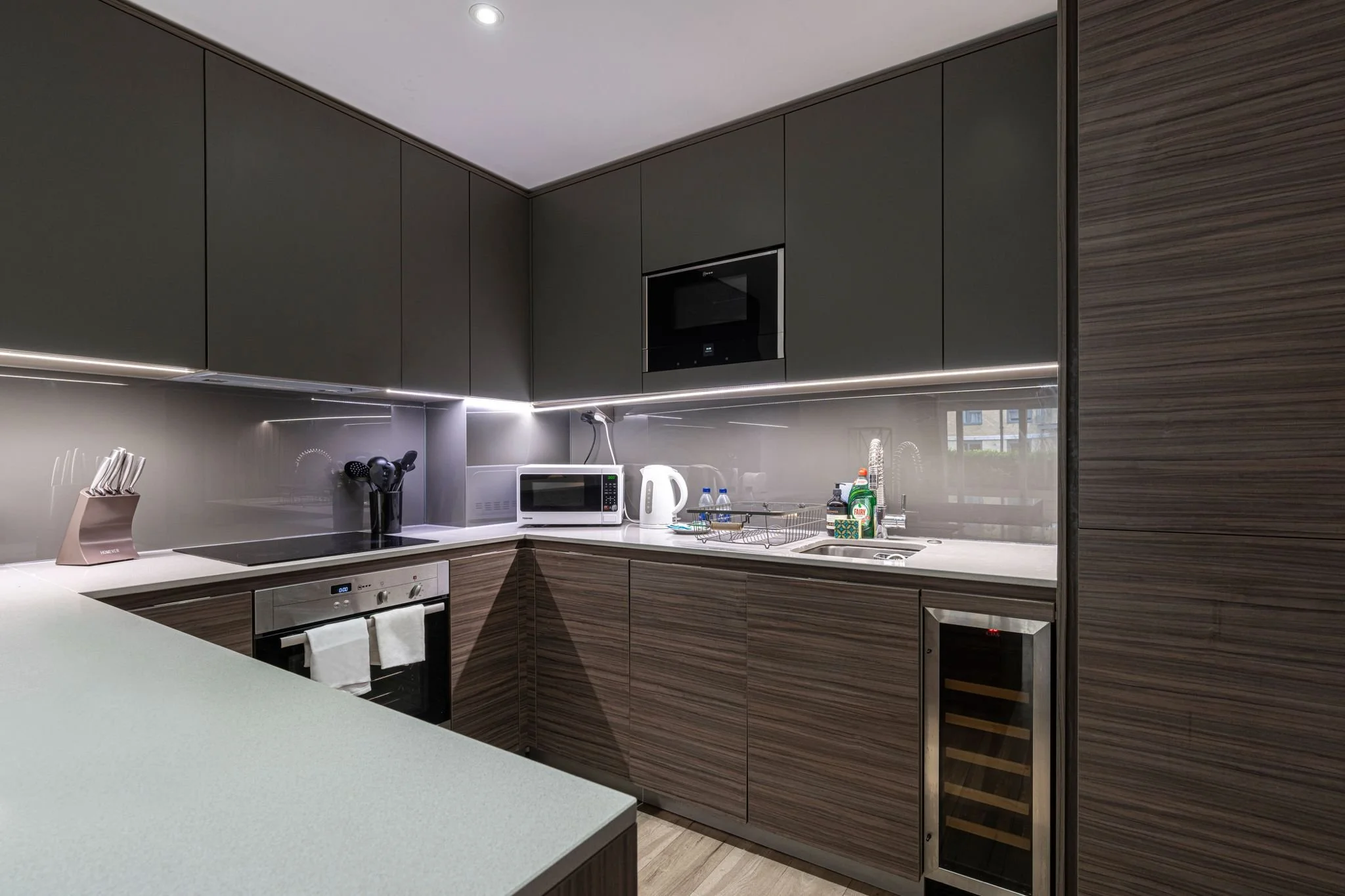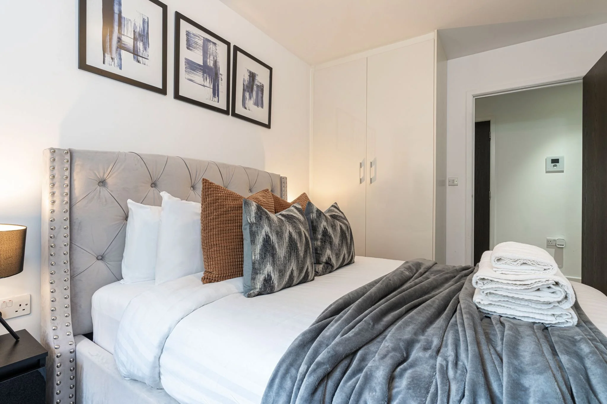 A contemporary furnished two-bedroom,, two-bathroom apartment in a modern development perfect for relaxing away from the buzz of the city. The apartment is fully equipped with everything required for a comfortable stay in a beautiful neighbourhood in London. The development has a vibrant buzz with local amenities on your doorstep. The apartment is well-equipped with a large open-plan living area, a modern kitchen, two double bedrooms and two modern bathrooms. It comes equipped with super-fast WiFi, smart TV with all the streaming services you can ever dream of. Enjoy everything London has to offer from this beautiful apartment.