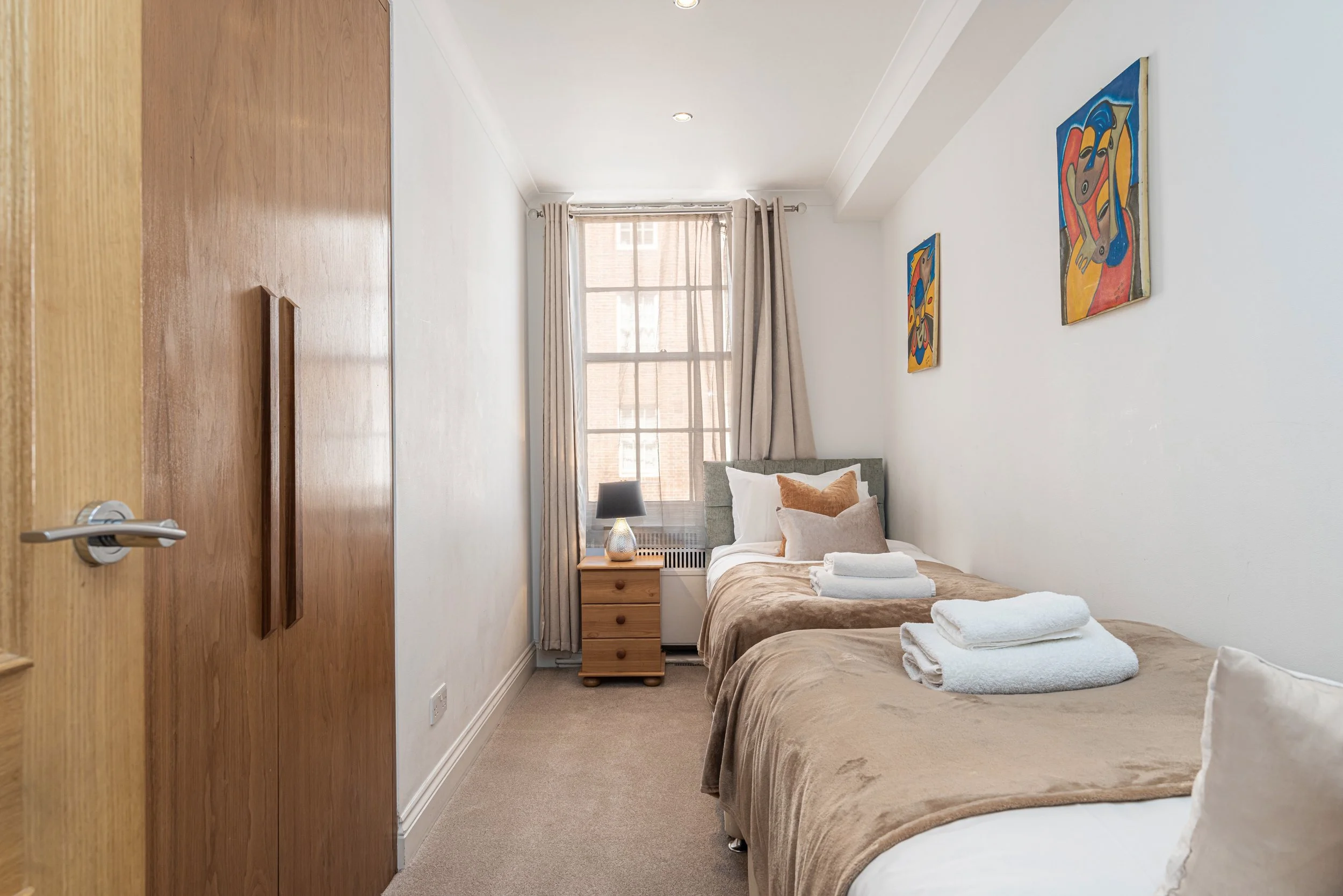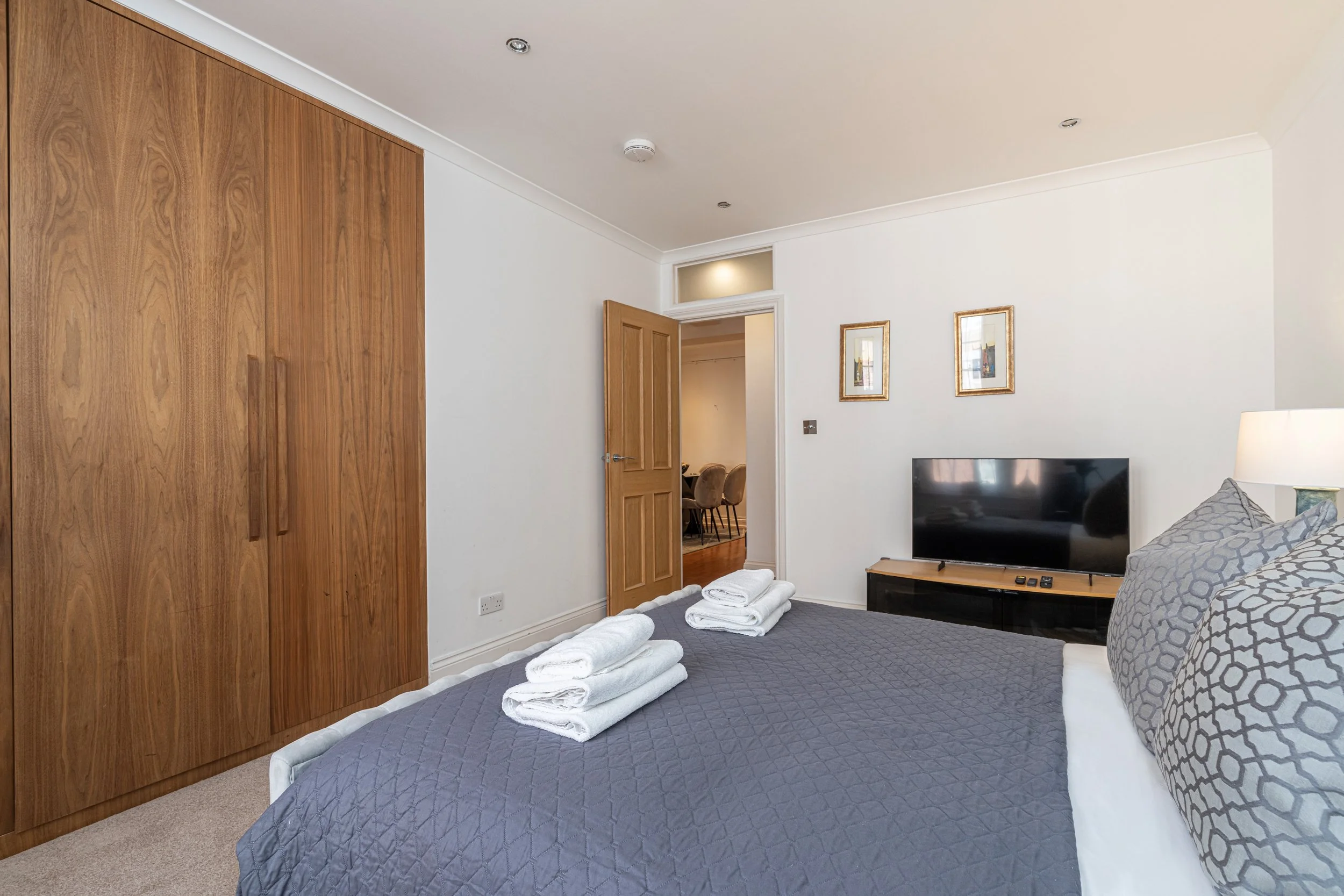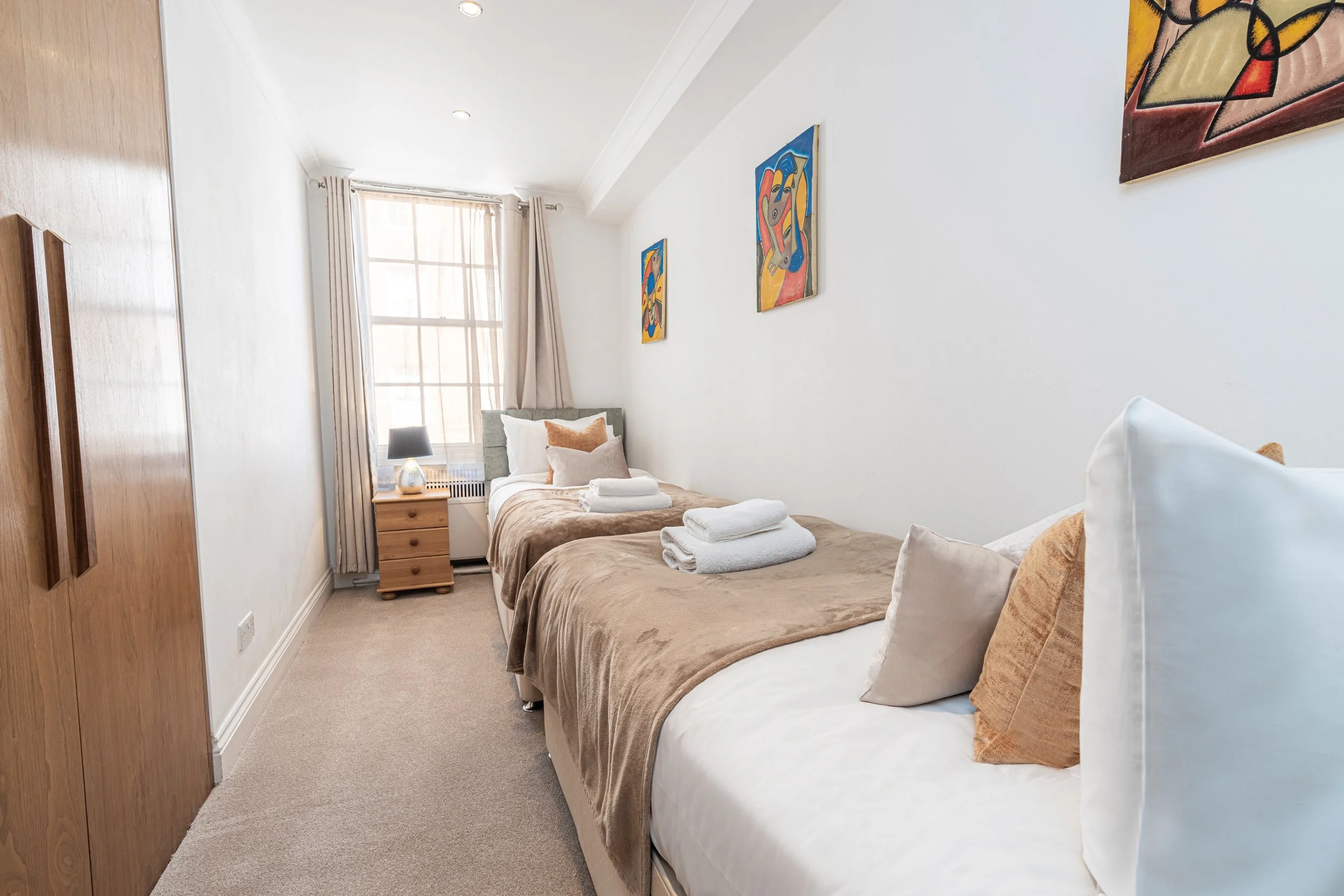 This beautifully decorated two-bedroom apartment is perfectly located for exploring everything the city has to offer. It is fully equipped with all amenities for a comfortable stay in a beautiful neighbourhood in London. The apartment is spacious with good sized living area, a separate kitchen and dining area. The master bedroom comes with a king-size bed and ample storage. The second bedroom is equipped with twin beds for kids or young adults. It provides a fantastic base for those wanting to be in the thick of it all when visiting London.