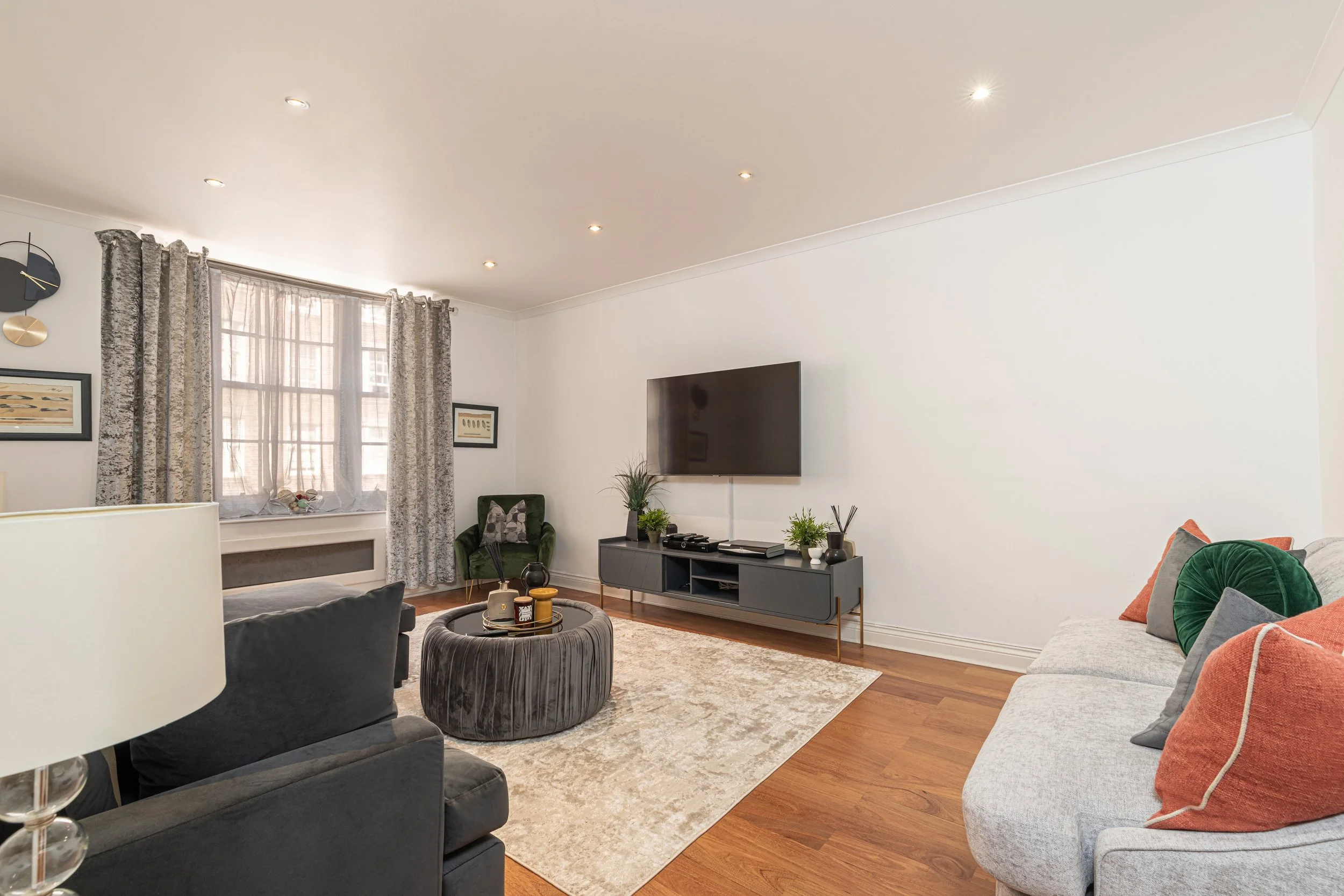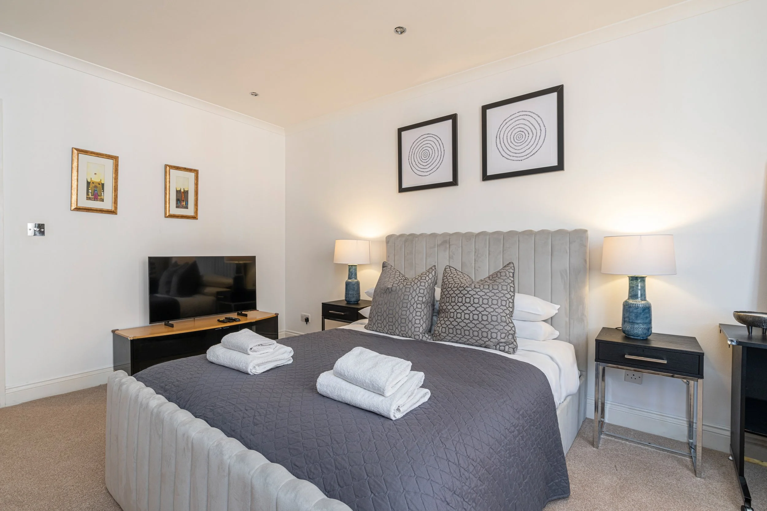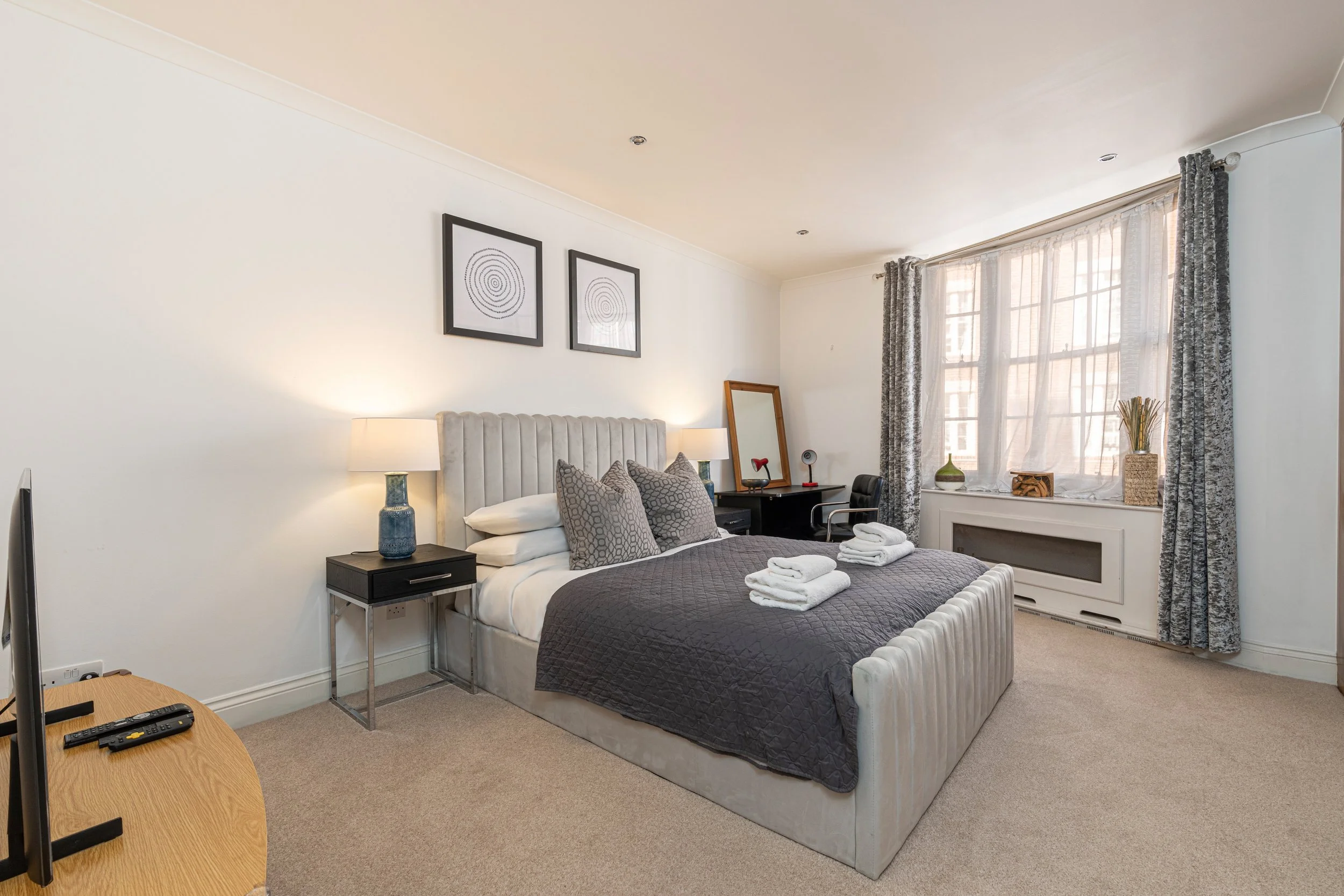 This beautifully decorated two-bedroom apartment is perfectly located for exploring everything the city has to offer. It is fully equipped with all amenities for a comfortable stay in a beautiful neighbourhood in London. The apartment is spacious with good sized living area, a separate kitchen and dining area. The master bedroom comes with a king-size bed and ample storage. The second bedroom is equipped with twin beds for kids or young adults. It provides a fantastic base for those wanting to be in the thick of it all when visiting London.