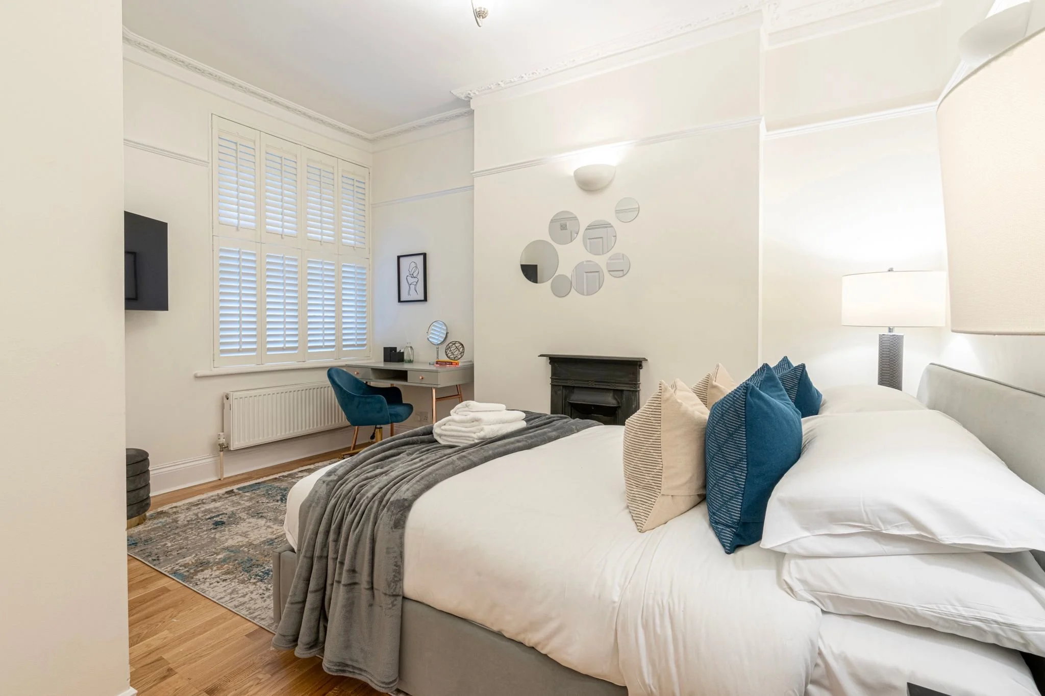 This stunning two-bedroom, two-bathroom, ground-floor apartment is located in a vibrant part of the city. Enjoy the buzz of the city on your doorstep with the famous Abbey Road right outside your door. The apartment is fully equipped with contemporary furnishings for a relaxing stay after working or exploring London.