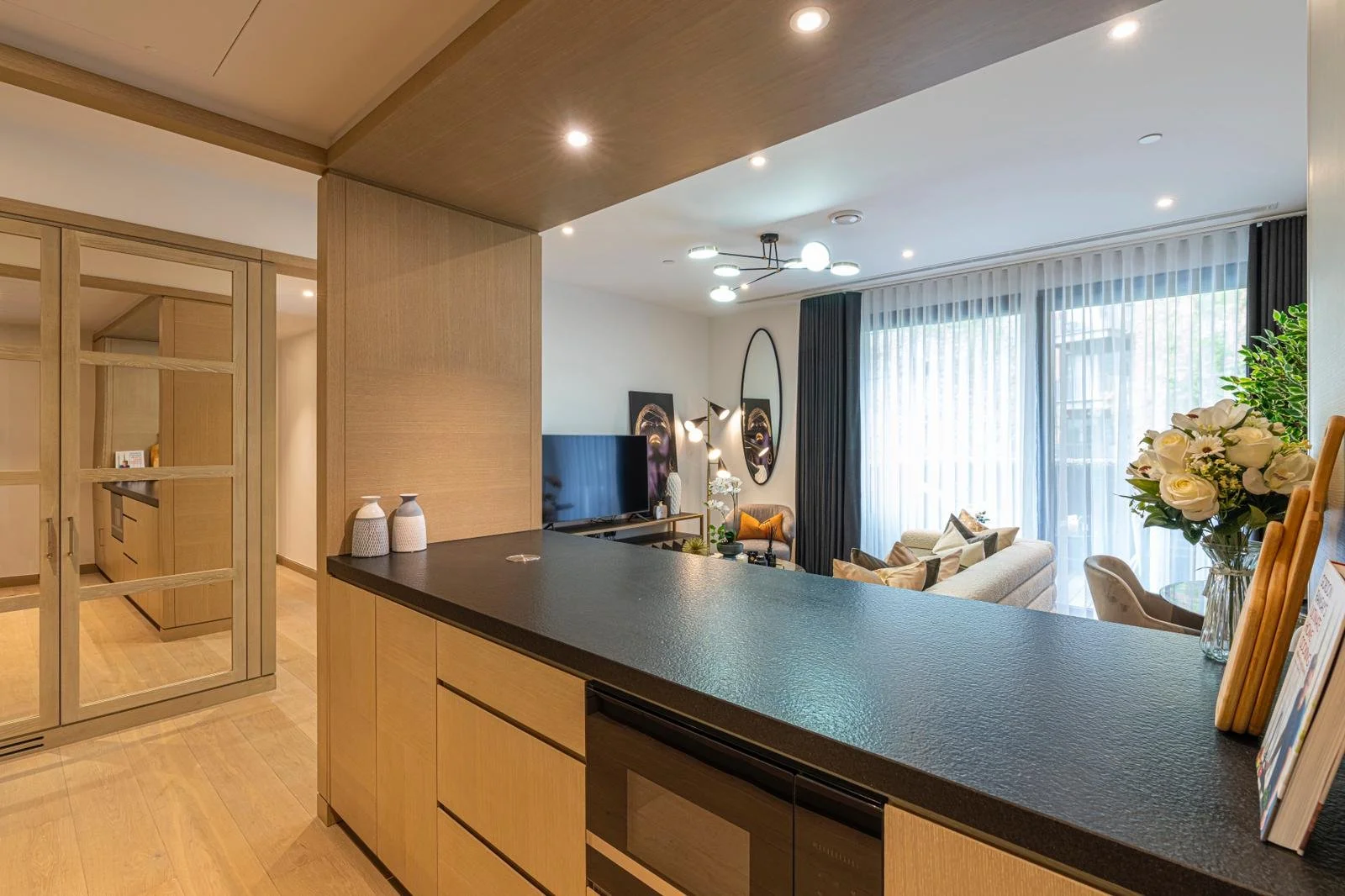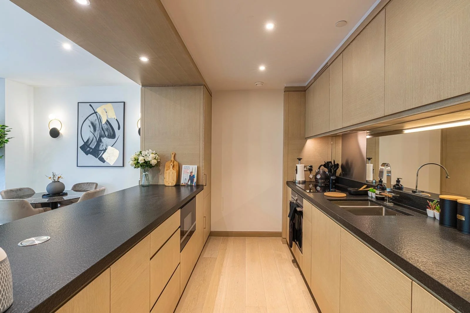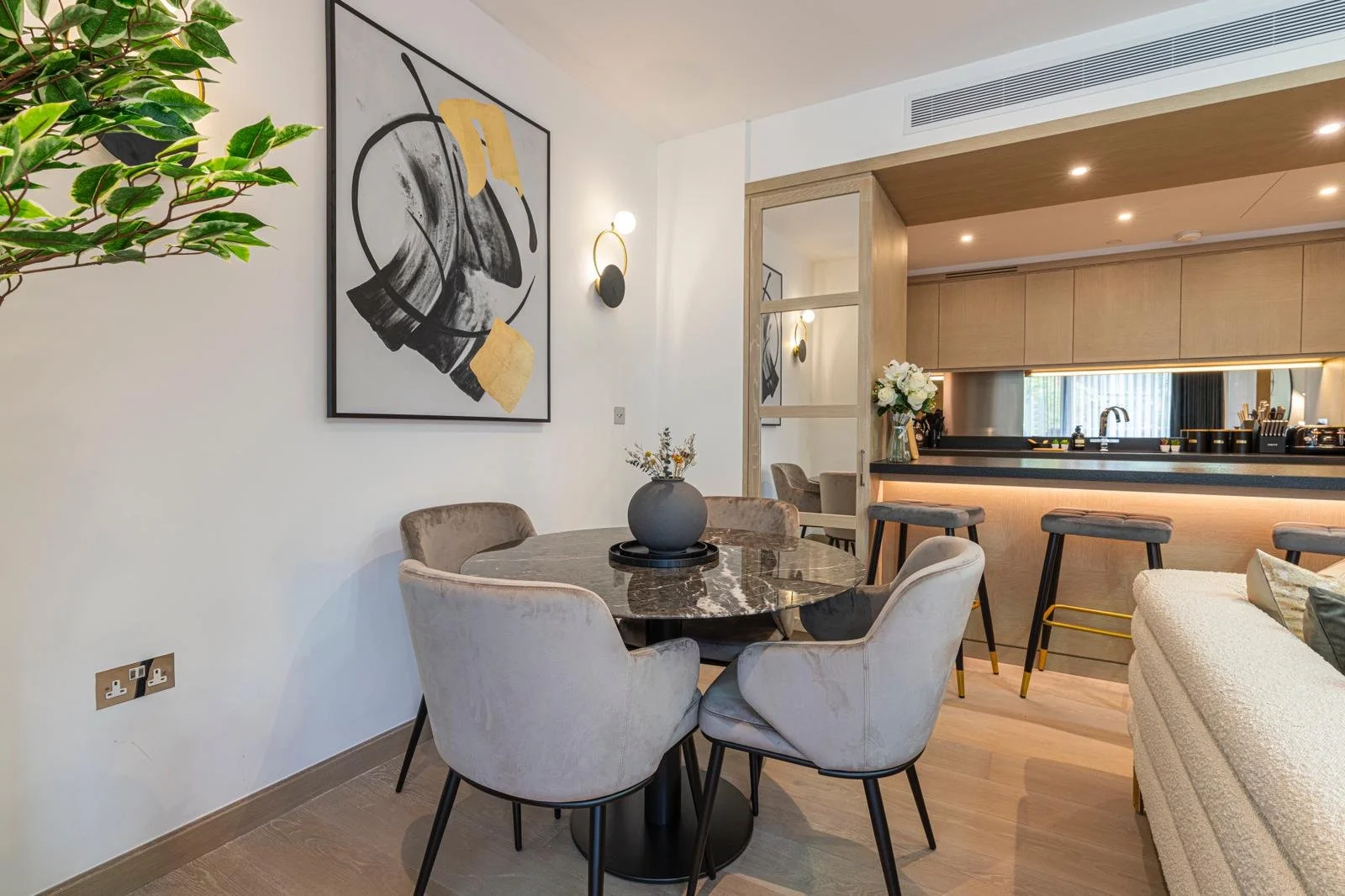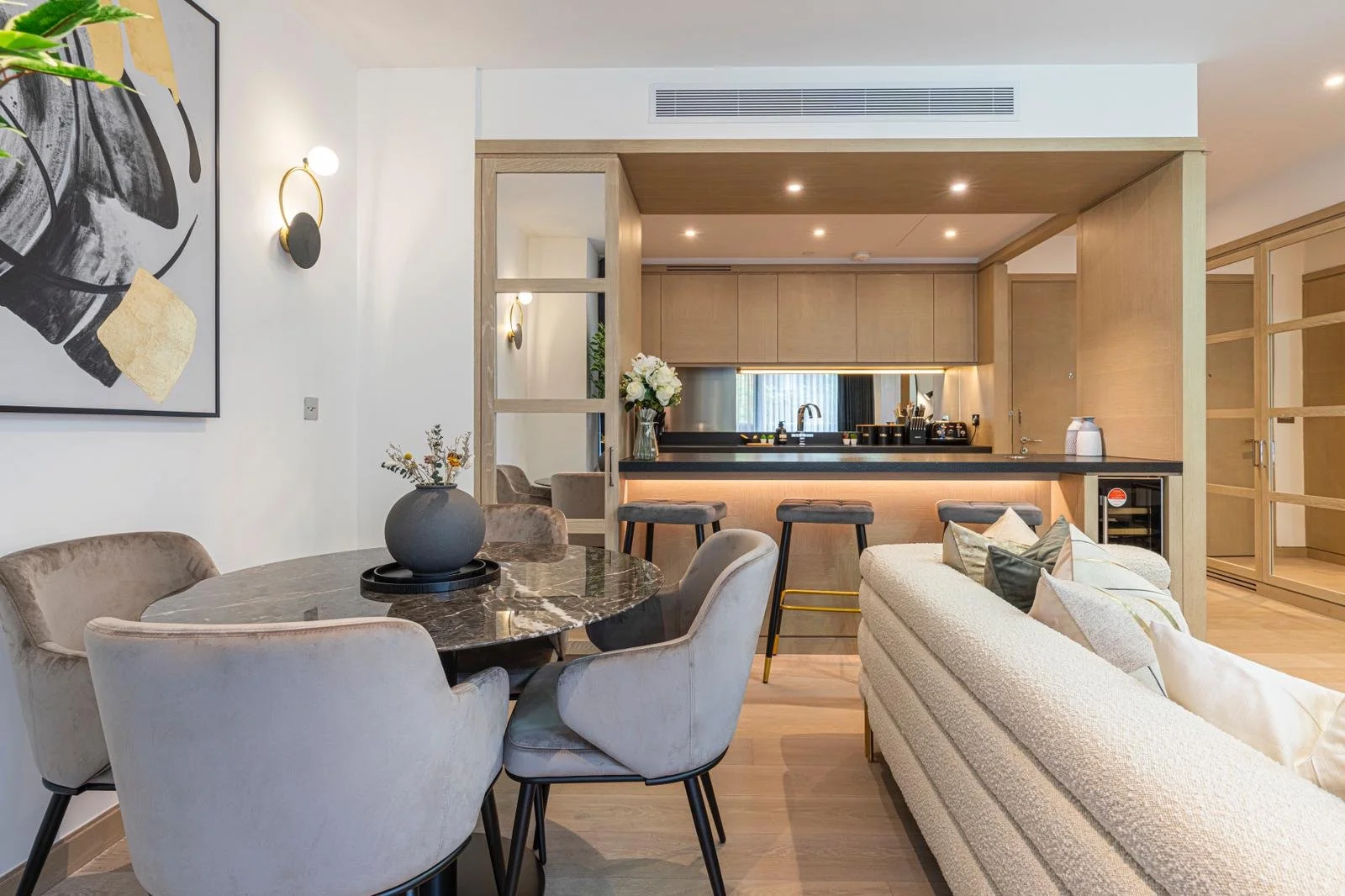 This luxury two-bedroom apartment with a balcony located in a prestigious new development in Nine Elms is the perfect London getaway. The development is located on the riverside of the new quarter of Nine Elms. Vauxhall and the newly opened Nine Elms Underground Station are within easy reach. The apartment comes with two decent-sized bedrooms with double beds, an en-suite master bedroom and a modern kitchen with all the necessary mod cons. It benefits from a high standard specification such as a bespoke built-in kitchen, bespoke bathrooms, built-in wardrobes, an air cooling system throughout the apartment, and a smart TV with all the binge-worthy streaming services.